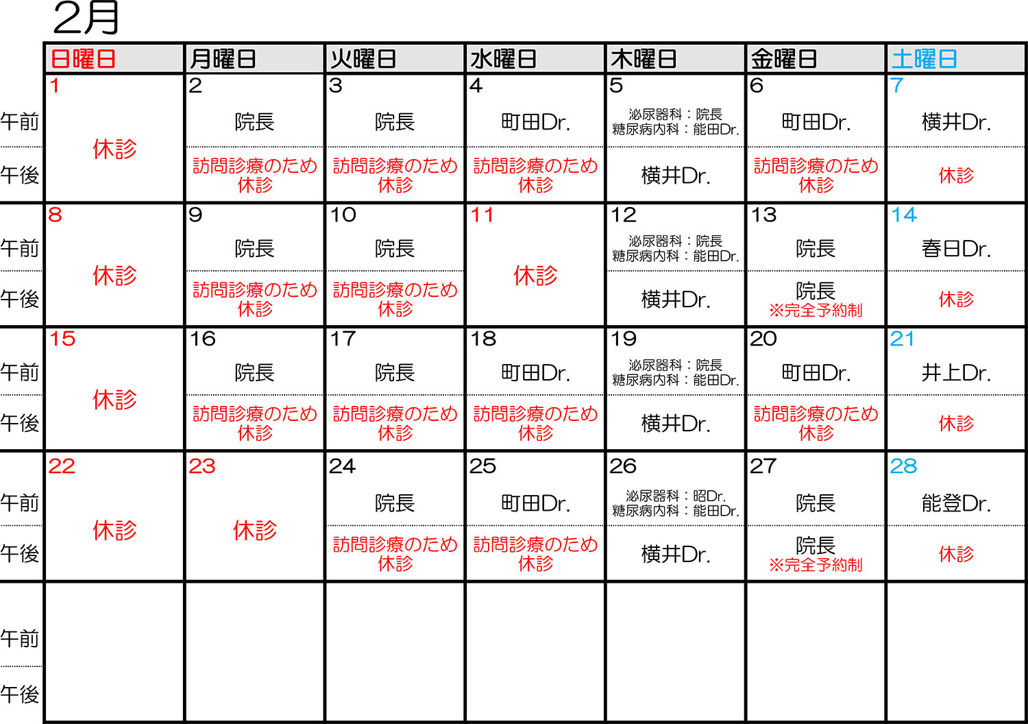 2月11日(水) 終日休診